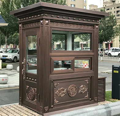 2、崗?fù)w:崗?fù)ね鈮w采用不銹鋼或鋼板,后期做防舊防銅處理,內(nèi)置擠塑板或防火巖面保溫層,內(nèi)墻板采用9mm厚白色高密度板或3mm厚臺灣吉祥牌鋁塑板裝修。