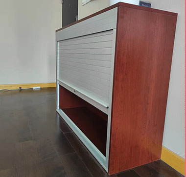此產(chǎn)品主要是用于櫥柜、工具柜、酒柜、酒柜等。我公司目前有兩款材質(zhì):PVC材質(zhì)和鋁合金材質(zhì),外形有大葉片和小葉片安裝以后它可以上下拉動和左右拉動或是卷簾方式開關。整體高度和寬度都可以根據(jù)你的要求來定做。我們也可以根據(jù)您現(xiàn)場的情況為加工生產(chǎn)您適合的產(chǎn)品。
