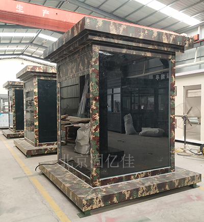 防彈崗?fù)S家所研制的防彈崗?fù)ぎa(chǎn)品,采用了防彈鋼板及防彈玻璃,有效保護(hù)崗?fù)?nèi)執(zhí)勤戰(zhàn)士的安全;崗?fù)ど显O(shè)有射擊孔,在滿足達(dá)到防彈功效的同時(shí),又方便戰(zhàn)士在崗?fù)?nèi)使用武器;頂部有活動(dòng)頂窗鋼板可以打開進(jìn)行通風(fēng)換氣。也可根據(jù)需求,調(diào)整門的位置及開門的方向和射擊孔的位置;