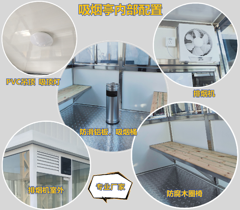 吸煙亭主要分兩種材質:不銹鋼吸煙亭,鋼結構吸煙亭,可用于工廠,辦公大要樓,車站,商場,超市等。為了很好地杜絕二手煙,也為了保護環(huán)境衛(wèi)生。在公眾場合專用于吸煙者使用的小房子,就是吸煙亭。